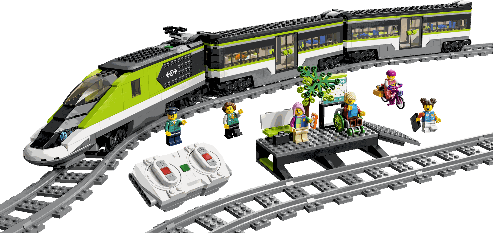 LEGO® Minifiguren-Zubehör: Das Set Personen-Schnellzug beinhaltet ein Laptop, ein Telefon, ein Fahrrad, einenRollstuhl, eine Aktentasche, einen Rucksack und einen Hotdog für die Minifiguren