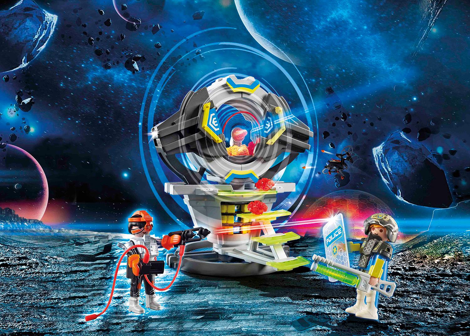 Wertvolle Gegenstände, Mineralien und Edelsteine werden im gut gepanzerten Tresor aufbewahrt. Natürlich haben die Galaxy Pirates es auf diesen Tresor abgesehen und schmieden einen finsteren Plan. Doch die Kristalle im Tresor sind nicht nur durch den wechselbaren Geheimcode, sondern auch durch den cleveren Galaxy Polizisten geschützt. Wird es den Piraten gelingen den Tresor zu knacken? Das Spielset enthält zwei PLAYMOBIL-Figuren Galaxy Polizist und Galaxy Pirat, einen Tresor mit veränderbarem Zugangscode. Als besonderes Extra kann der Tresor auch als Spardose verwendet werden.